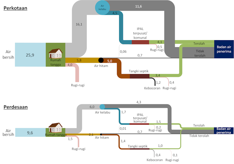 Konsumsi air bersih dan timbulan air limbah domestik di Indonesia (Gambar diadaptasi dari publikasi di Environmental Science and Pollution Research, Springer Nature)